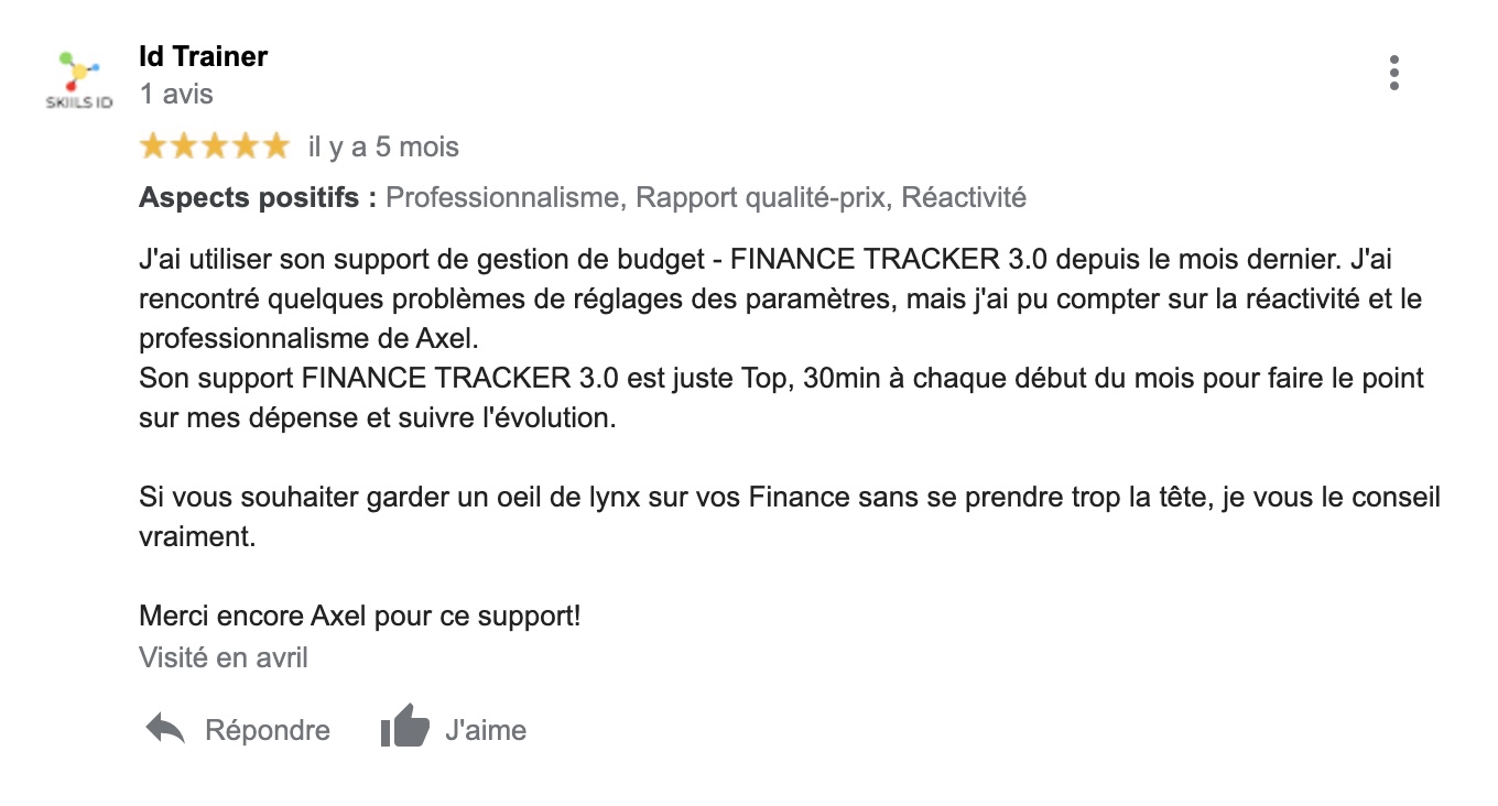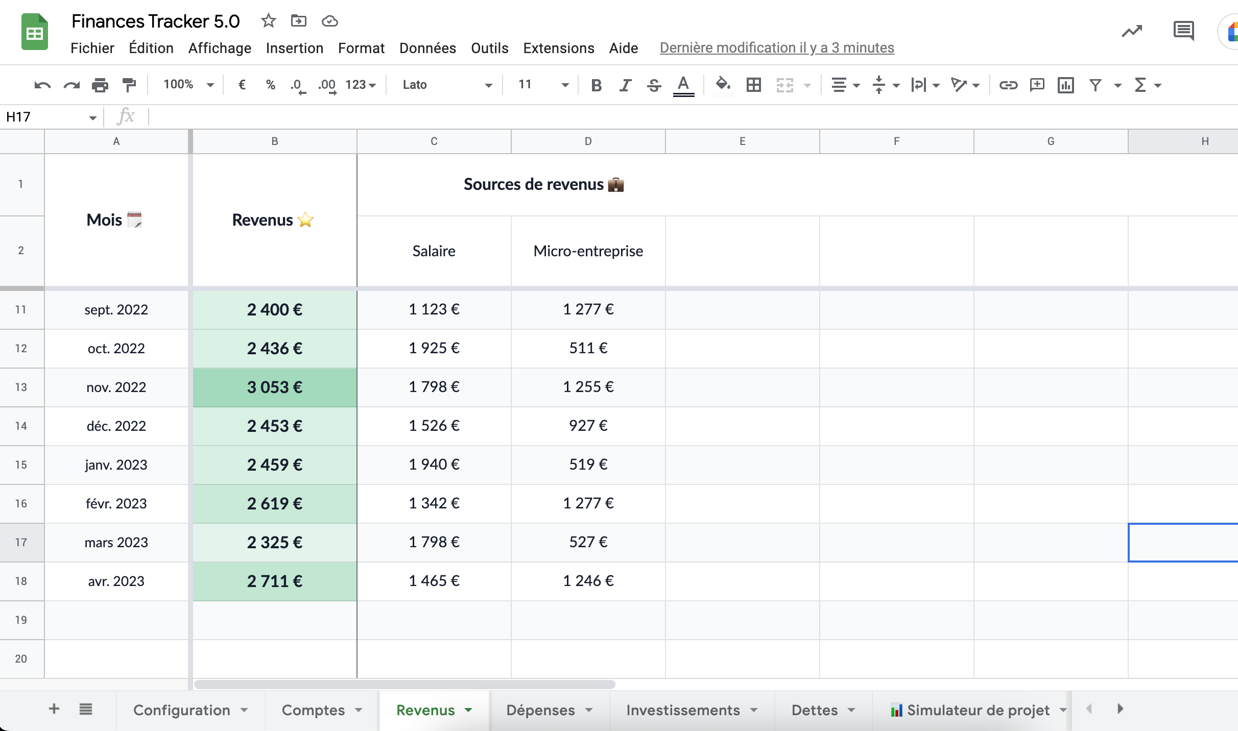 Après avoir complété votre Google Sheets, vous aurez un magnifique tableau de bord.