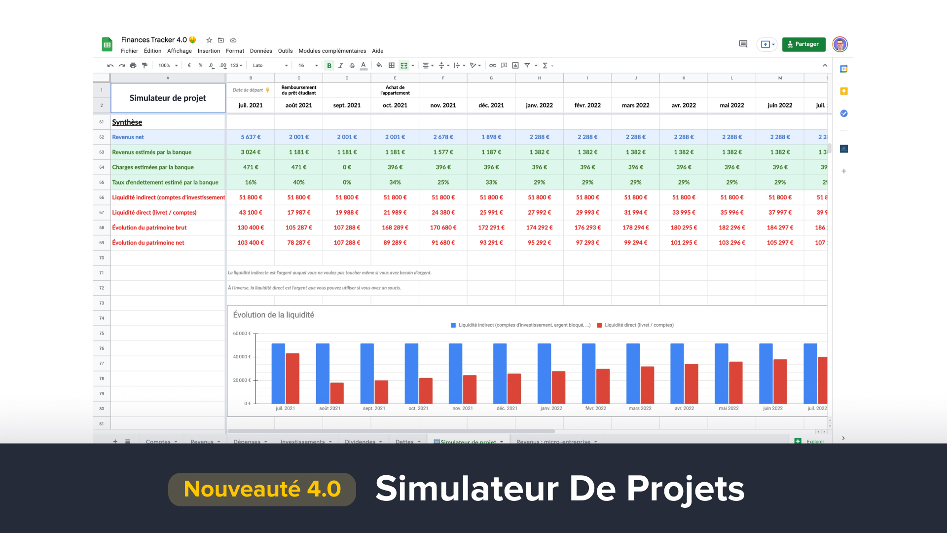 • L'évolution de votre cashflow et de votre taux d'épargne